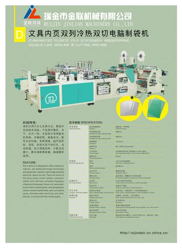 文具內頁雙列冷熱雙切電腦制袋機