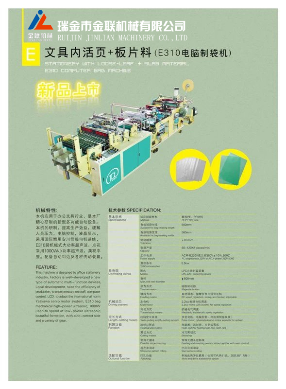 文具內活頁+板片料(E310電腦制袋機)